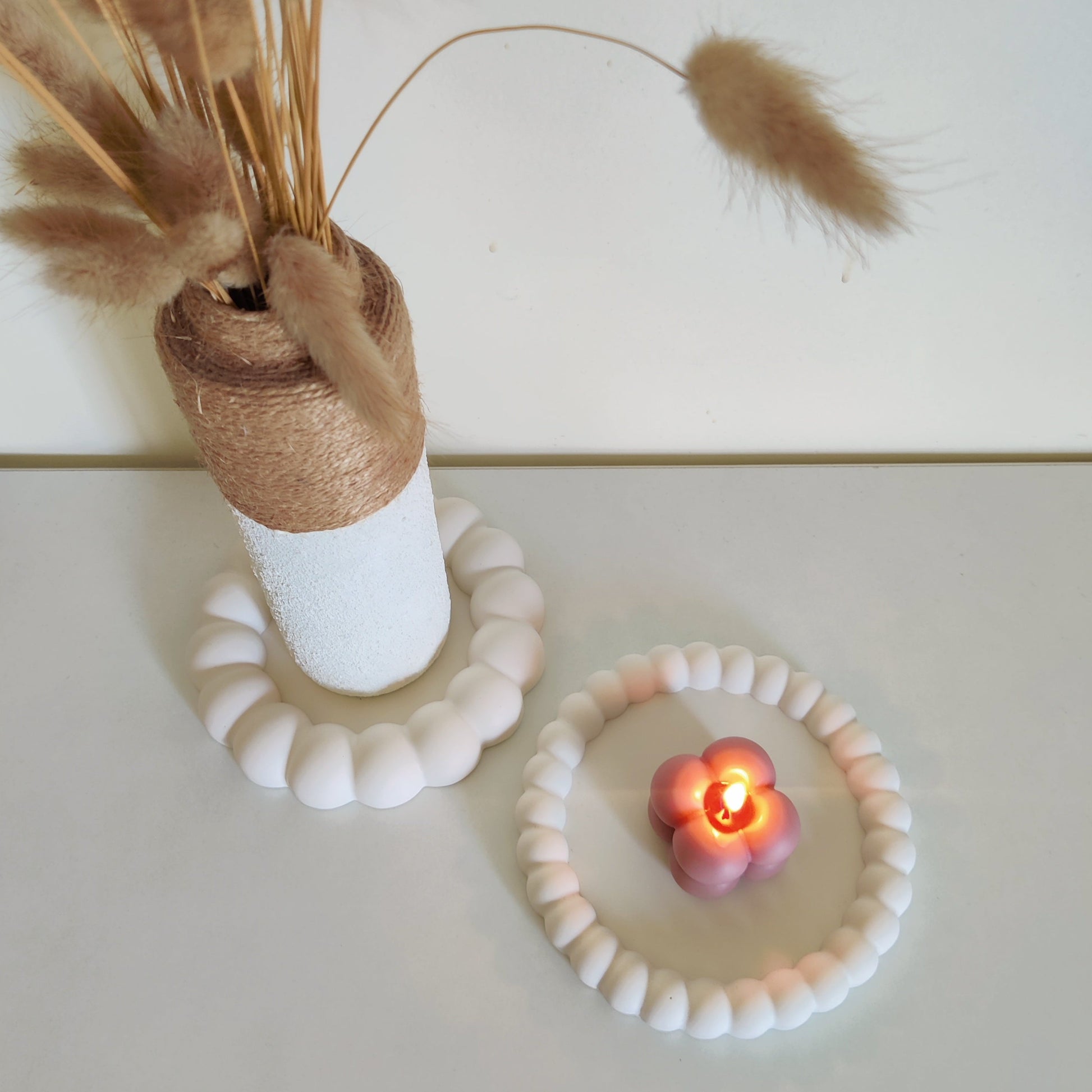 Our beautifully handmade coasters can be used to keep mugs or cupcakes, or you can use it to keep your stationary on your work desk, or jewelry on your dresser or you can put a candle on it next to a matching vase with beautiful dried flowers for an aesthetic look!!