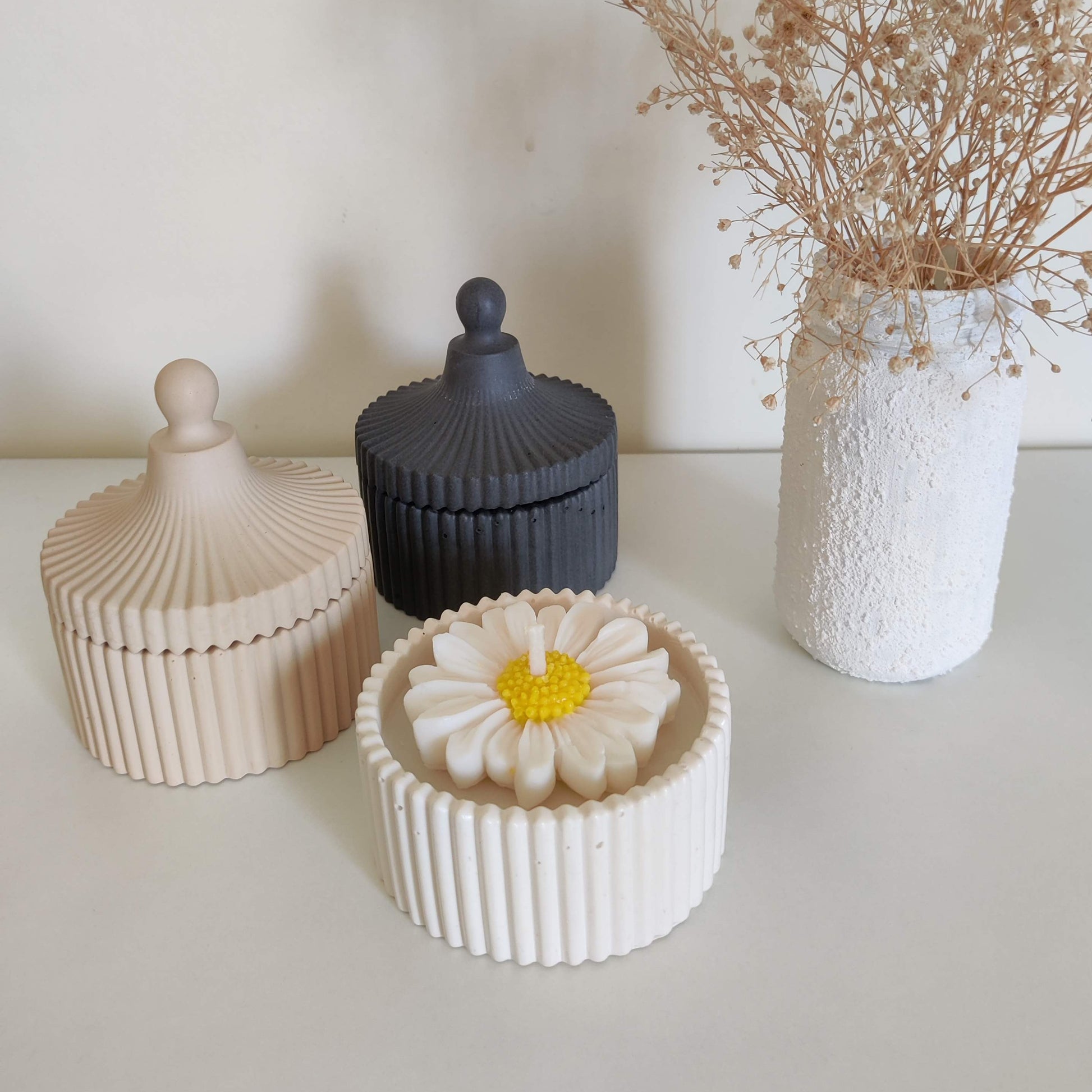 The jars are handmade by us using jesmonite. These can also be used as decorative jars to keep your jewelry, stationary, etc., once the candle is done. As each product is hand poured, we are careful and try our best to avoid any air bubbles. However, they may occur due to the nature of Jesmonite, but please note that this is unavoidable. All our Jesmonite products are sealed with water resistant sealant