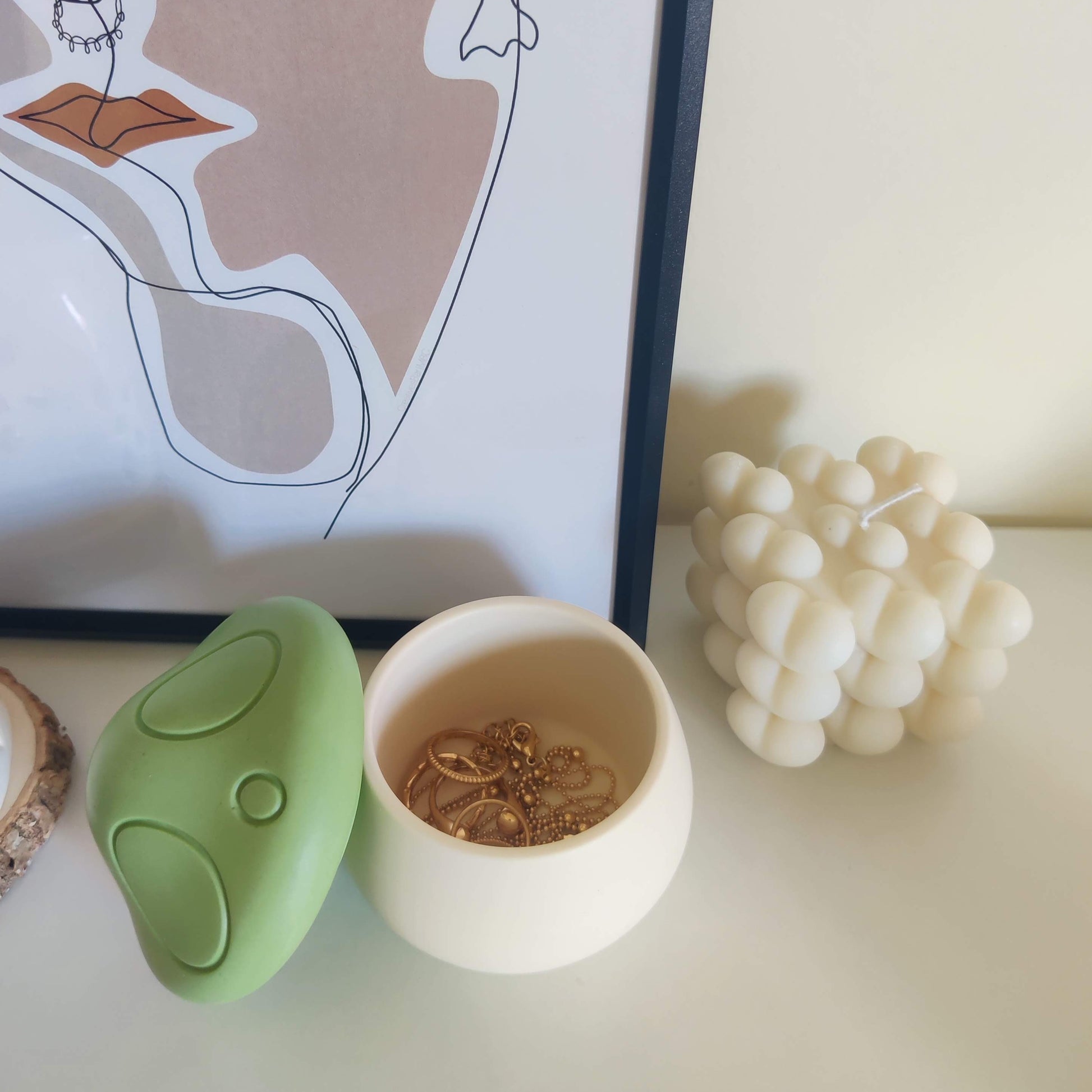 Our beautifully handmade mushroom jars can be used as a jar to keep your small stationary stuff organized on your work desk, or jewelry and makeup on your dresser or you can use it as a decorative item and can put a candle next to it along with a matching vase with beautiful dried flowers for a rustic look and make the whole corner look more elegant and aesthetic!