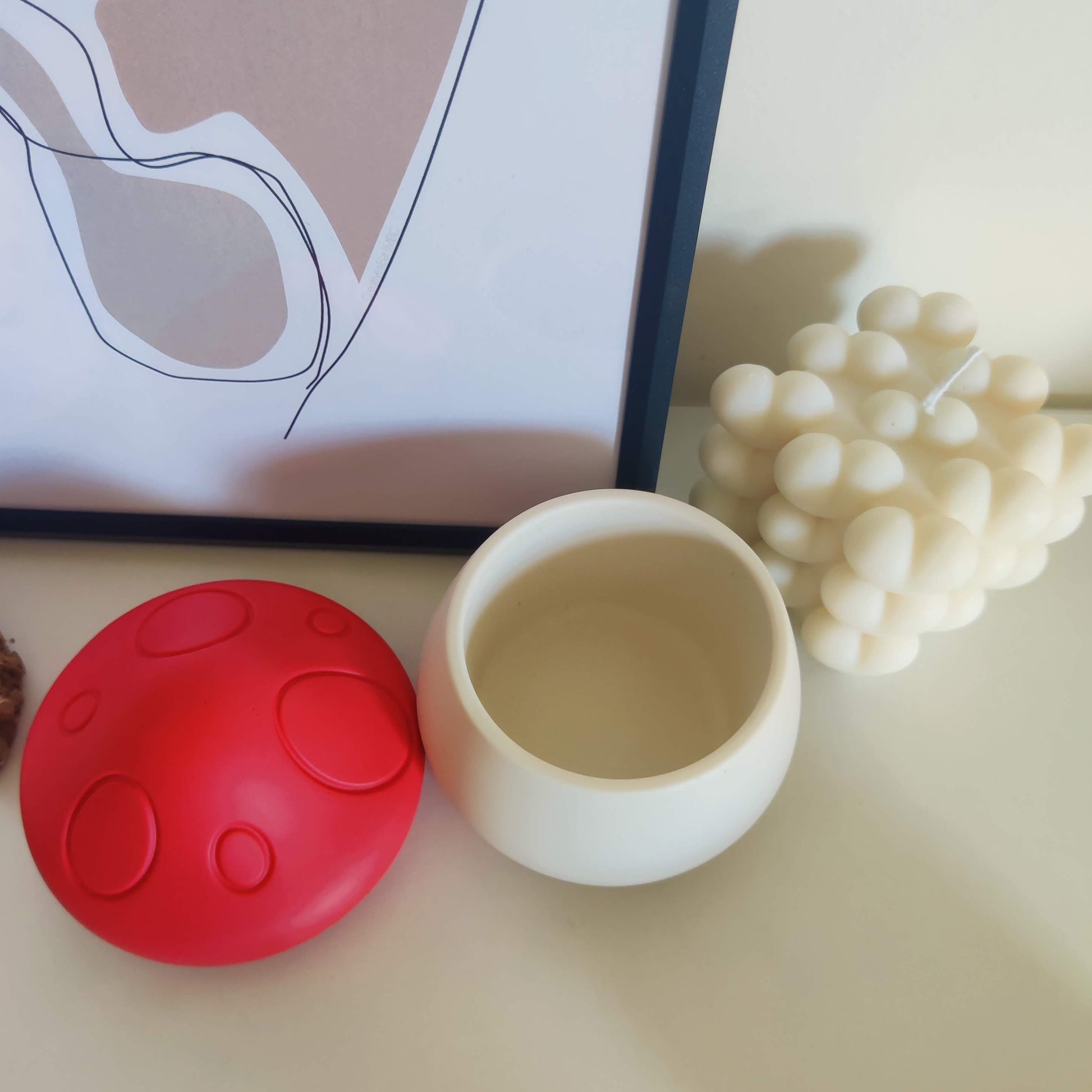 Our beautifully handmade mushroom jars can be used as a jar to keep your small stationary stuff organized on your work desk, or jewelry and makeup on your dresser or you can use it as a decorative item and can put a candle next to it along with a matching vase with beautiful dried flowers for a rustic look and make the whole corner look more elegant and aesthetic!