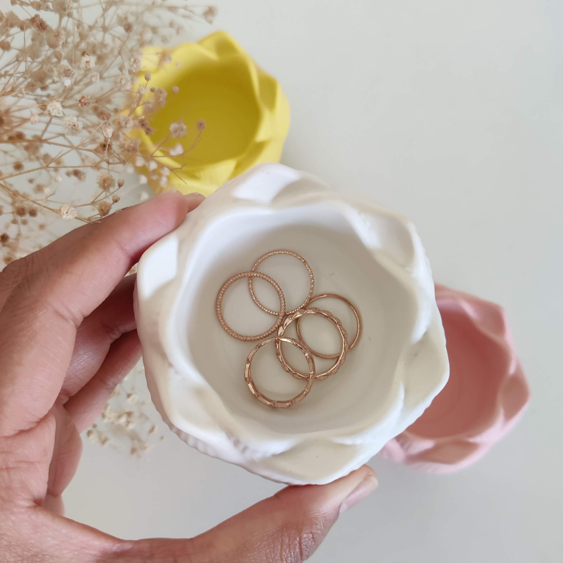 Our beautifully handmade lotus jars can be used as a jar to keep your small stationary stuff organized on your work desk, or jewelry and makeup on your dresser or you can use it as a decorative item and can put a candle next to it along with a matching vase with beautiful dried flowers for a rustic look and make the whole corner look more elegant and aesthetic!
